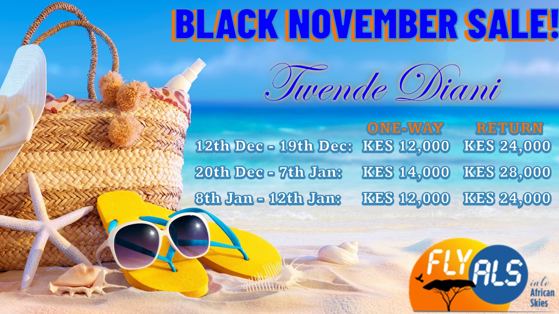 Group discounts for flights to Diani are available for larger bookings. For the best rates and to explore options, please contact our customer service team at ALS Limited.